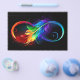 Símbolo infinito desenhado artificialmente com uma bela pena de arco-íris sobre fundo branco. Estilo de tatuagem.