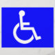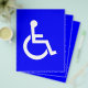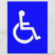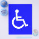 Coloque-o na janela, no papelão, lamine-o com uma bolsa laminadora.... Você também pode adicionar texto - use o botão personalizar e, em seguida, a ferramenta de texto - (entre em contato conosco se precisar de assistência). O Símbolo Internacional de Acesso (ISA), também conhecido como Símbolo (Internacional) da Cadeira de Rodas, consiste num quadrado azul sobreposto a branco com uma imagem estilizada de uma pessoa que utiliza uma cadeira de rodas. Ela é mantida como uma norma internacional, ISO 7001, e uma imagem protegida por direitos autorais da Comissão Internacional de Tecnologia e Acessibilidade (ICTA), um comitê da Reabilitação Internacional. Foi projetada por Susanne Koefoed em 1968. O símbolo é frequentemente visto onde o acesso foi melhorado, especialmente para os utilizadores de cadeiras de rodas, mas também para outras questões relacionadas com deficiência. Frequentemente, o símbolo denota a remoção de barreiras ambientais, como degraus, para ajudar também pessoas mais velhas, pais com carruagems para bebês e viajantes. A design universal visa evitar a necessidade de tais símbolos, criando produtos e equipamentos acessíveis a quase todos os utilizadores desde o início. O símbolo da cadeira de rodas é "internacional" e, por conseguinte, não é acompanhado por Braille em qualquer língua específica. As utilizações específicas da ISA incluem: * Marcação de um local de estacionamento reservado a veículos utilizados por pessoas/crachás azuis com deficiência * Marcação de um veículo utilizado por uma pessoa com deficiência, frequentemente para autorização de utilização de um espaço * Marcação de um lavatório público com instalações concebidas para utilizadores de cadeiras de rodas * Indicação de um botão para ativar uma porta automática * Indicação de uma estação de trânsito ou veículo acessível * Indicação de uma rota de trânsito que utiliza veículos acessíveis (fonte wikipedia)