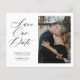 Casamento de foto de forma de chico minimalista com BARATO BUDGET, salve a data PAPER FLYER (jornal tipo anúncio) em preto e branco simples com um moderno roteiro elegante de caligrafia. ++++++++++ Adequado para quaisquer casamentos temáticos modernos de classe sazonal. +++++++++++++++++++++++ LEIA ISSO ANTES DE COMPRAR! Este é um cartão de casamento de barato orçamentário impresso em um FLYER. +++ Observe que o PAPEL ORÇAMENTAL É THIN - Você pode fazer upgrade para que este cartão seja impresso no estoque de cartão +++ ENVELOPES NÃO INCLUÍDO. +++ Verifique todas as informações e ortografia do seu texto porque você receberá exatamente o que você vê - ninguém mais verificará nada antes de imprimir. +++ Esta placa foi projetada para o tamanho de 4,5" x 5,6". Caso você escolha outro tamanho do cartão e o texto saia da página, tudo precisa ser corrigido antes de adicionar o produto ao carrinho. Peça ao Serviço de Design ao Vivo se precisar de ajuda.