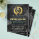 Modelo de Panfleto de Casa Aberta do Estúdio de Instrutor de Meditação YOGA de Árvore em Aquarela Elegante - Caligrafia de Folha de Ouro Falso Elegante Postura de Meditação de Yoga sobre Fundo de Pinceladas de Tinta Aquarela Preta Grunge.