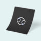 Um símbolo do zodíaco Câncer cromado prateado aplicado em um fundo preto. Um design moderno e ousado para uma ótima ideia de presente de aniversário personalizado.