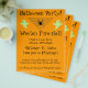 Uma aranha-viúva negra está sentada em sua teia triangular de aranha esperando a próxima presa. Ela tem a famosa marca de vidro vermelha de uma viúva negra. Dois fantasmas verdes claros estão ao lado da internet. A cor do papel é laranja. Todo texto é personalizável com modelos. Imagem é o meu desenho original. Veja a minha loja Ravenswick para combinar produtos com este design.