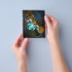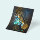 Barbeiro véu com asas transparentes azuis e lâmpada verde sobre fundo vestido, marrom, texturizado. Estilo Steampunk.