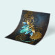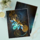 Barbeiro véu com asas transparentes azuis e lâmpada verde sobre fundo vestido, marrom, texturizado. Estilo Steampunk.