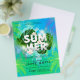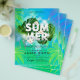 O Planador Da Festa De Summer Club Apresenta O Fundo Verde Teal E A Árvore Azul Da Palma, Folhas Verde Botânicas, Florais De Marfim E Formas Geométricas. Personalize Para O Seu Gosto.