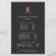 O design de folheto elegante para salões de cabelo ou estilistas mostra seus serviços ou sua lista de preços em caracteres brancos clássicos em uma cinza de carvão enfeitiçada com um par de tesouras embelezadas por flores em folha de ouro rosa. Inclui três títulos personalizáveis e campos de texto do corpo e espaço para as informações de contato do salão na parte inferior. Para ajustar o layout, digite seu texto e use a função Personalizar para alterar o posicionamento e os tamanhos de fonte.