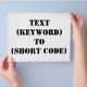 "TEXTO (PALAVRA-CHAVE) PARA (CÓDIGO CURTO)" Altere PALAVRA-CHAVE e CÓDIGO CURTO para a sua própria palavra-chave de mensagem de texto e código curto. Adicionar qualquer outro slogan ou texto.