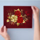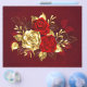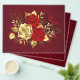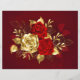A composição de duas rosas vermelhas pintadas artisticamente e uma rosa ouro, decorada com ouro, folhas de joias sobre fundo texturizado.