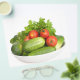 Produtos hortícolas isolados em branco - pepinos, abobrinhas, tomate e salsa