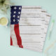 Bandeira Americana Vintage sobre fundo de madeira branco lavado e curado