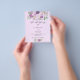 Por favor, note que este convite está no papel de folheto e é muito fino. Os envelopes não estão incluídos. Para convites mais espessos (mesmo design) visite nossa loja. Um fundo violeta, lavanda, de cor aquosa. Decorado com flores violetas e púrpuras de cor aquosa e verde. Personalize e adicione seus nomes e detalhes da festa.