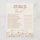 Adicione diversão à sua comemoração com nossa flor selvagem Como você conhece bem o jogo de Chá de panela da noiva! Apresentando belos designs de flor silvestre, este jogo desafia os hóspedes a responder perguntas sobre a noiva, de seu filme favorito ao seu trabalho de sonho. Perfeito por quebrar o gelo e fazer risos, é uma maneira deliciosa de ver quem conhece melhor a noiva. Criado com elegância e charme, este jogo garante um chá de panela memorável e envolvente para todos.