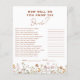 Adicione diversão à sua comemoração com nossa flor selvagem Como você conhece bem o jogo de Chá de panela da noiva! Apresentando belos designs de flor silvestre, este jogo desafia os hóspedes a responder perguntas sobre a noiva, de seu filme favorito ao seu trabalho de sonho. Perfeito por quebrar o gelo e fazer risos, é uma maneira deliciosa de ver quem conhece melhor a noiva. Criado com elegância e charme, este jogo garante um chá de panela memorável e envolvente para todos.