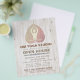 Instrutor de Meditação YOGA Studio Open House Flyer Modelo - Elegante Rosa Dourado Bodhi Leaf e Yogi no fundo da madeira branca.