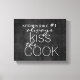Esta fofa canvas de cozinha que diz que a arte tem texto branco sempre beija o cozinheiro no estilo de chique de cinza de carvão escuro angustiado. Arte de parede para decoração de cozinha.