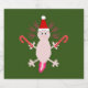 Esta maravilhosa folha de rótulos de vinho espumante de Natal apresenta uma imagem de arte digital de um bonito Axolotl de Natal. O Axolotl é cor-de-rosa pálido com guelras rosadas brilhantes. Ele está segurando uma bengala vermelha e branca listrada em cada mão e está vestindo um chapéu festivo de Papai Noel branco e vermelho. O axolotl é do tipo Salamander do México.