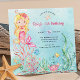 Engraçado sob o convite de aniversário de garotas do mar apresentando uma linda cena submarina com uma sereia.