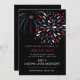Esses convites de festas na moda, estilo moderno 4 de julho, apresentam fogos de artifício vermelhos, brancos e azuis em um fundo preto noturno. Personalize facilmente as informações da sua própria festa e seus convidados adorarão isso!