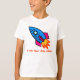 A camiseta da Lua e Trás é excelente para qualquer um que ama foguetes e espaço sideral! O design apresenta um foguete azul com chamas amarelas e laranja sobre um fundo branco. O texto é laranja e personalizável! Faz um presente excelente para o regresso à escola, Natal, aniversários e muito mais!