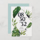 Casamento moderno e informal Salve a data com uma bela ilustração das folhas verdes da selva tropical. Adicione facilmente sua data de cerimônia e os nomes da noiva e noiva em fontes de cinza escura sobre um fundo geométrico branco. Este cartão Salvar a Data faz parte da coleção "Casamento Selvagem Tropical" com muitos itens coordenadores para criar um pacote de casamento único.