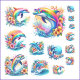 Folha de adesivos Rainbow Dolphin e Ocean Retro