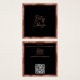 Uma folha de cobre elegante e cartão de visita preto com espaço para o seu nome e informações de contato. Este design inclui um código QR na parte traseira.