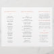 Faça seu dia de casamento exclusivamente seu com nosso programa minimalista e personalizável de laranja e triplicado branco. Este produto tem um elemento de cor - você mesmo terá que dobrá-lo em um estilo de brochura. Inclui informações sobre a festa de casamento, a linha do tempo do evento, a ordem da cerimônia, recepção, memória amorosa e obrigados do casal. Este programa elegante é fácil de editar e foi impresso diretamente no Zazzle, permitindo que você crie um na moda e uma adição memorável ao seu dia especial!