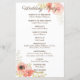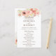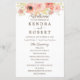 Este belo programa de casamento apresenta rosas rosa-coral acentuadas com folhas de ouro e galhos. O texto castanho escuro se coordena perfeitamente com os designs florais cor-de-rosa e dourados. A frente apresenta os nomes do casal, a data do casamento e a localização, bem como os detalhes da cerimônia. A parte traseira apresenta os nomes da festa de casamento. Todos os detalhes, incluindo a cor do texto, são completamente personalizáveis. Note-se que as folhas de ouro não são folhas de ouro e não serão brilhantes no programa impresso.