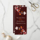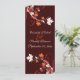 Folhas de outono, cartão do programa de cerimônia de casamento vermelho-alaranjado e castanho, com lindas folhas vermelhas do outono, laranja e branco em cores do outono e espirais graciosas sobre fundo castanho. Um convite elegante e moderno perfeito para um casamento outono tradicional ou contemporâneo.