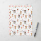 Belo e único papel de álbuns com um padrão com crianças em calculadora, fantasias de urso e pato. O verso do papel tem um padrão de bolinhas em cor laranja. Ilustrada e projetada por Patricia Alvarez.