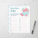Folha de papel de chá de fraldas com morangos bonitos em um copo no estilo de esboço em aquarela.