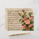 Colagem com uma bela ilustração de rosa cor-de-rosa com fundo de música de folha manuscrita antiga.
