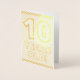A frente deste design de cartão de saudação de folha de ouro, com tema de aniversário enfático e ousado, apresenta a mensagem "10 ANOS DE IDADE!". O dentro apresenta uma mensagem de saudação de aniversário que pode ser personalizada. Um cartão de cumprimentos de aniversário como este pode ser uma maneira especial de enviar uma saudação de aniversário a alguém que comemora seu décimo aniversário. [~Z0000360]