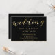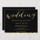 Convites para casamento em folha de ouro elegantes com texto personalizável impresso em fundo preto