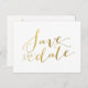 Glamor de folha de ouro invertido e impresso à frente Salve o cartão postal de data. Elke Clarke © Outras cores disponíveis em www.zazzle.com/monogramgallery. Um simples, mas versátil, dourado de guião manuscrito salva a data para casamentos ou outras ocasiões especiais, como jantas de ensaio, chás de casais, comemorações de aniversário de casamento. Folha de ouro é um efeito fotográfico impresso.