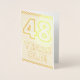 A frente deste design de cartão de saudação de folha de ouro, com tema de aniversário enfático e ousado, apresenta a mensagem "48 ANOS DE IDADE!". O dentro apresenta uma mensagem de saudação de aniversário que pode ser personalizada. Um cartão de boas-vindas de aniversário como este pode ser uma forma especial de comemorar o 48º aniversário de alguém. [~Z0000360]