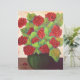 A pintura apresenta um vibrante buquê de frutos vermelhos de viburno, cujos cachos explodem em cores profundas e ricas. Os ramos são adornados com folhas verde-escuras ligeiramente brilhantes que contrastam lindamente com o vermelho vibrante dos frutos. Os caules são delicados, mas firmes, mantendo os cachos unidos em um arranjo natural. O fundo é suave e discreto, talvez em tons de bege claro ou cinza quente, permitindo que os frutos brilhantes se destaquem ainda mais.