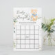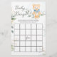 Este design apresenta um urso de pelúcia amigável com arco azul. Ele está cercado por folhagem verde. Greenery Chá de fraldas Bingo Game