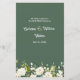 Este design apresenta uma ilustração de rosas brancas com folhagem vibrante e colorida em estilo aquarela. No topo do cartão - confetes com efeito dourado e esverdeado.