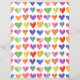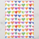 Este padrão simples e moderno de aquarela de corações arco-íris em branco é excelente para projetos de artesanato de papel, de desvinculação e de raspagem. Excelente para Dia de os namorados, aniversário e orgulho. Projetado por © Tim coffey.