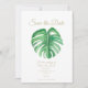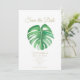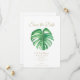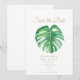 Um simples e elegante cartão 'Salve a Data' com um motivo de folha tropical e texto clássico de ouro.