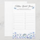 Folhas de chá de panela de flor selvagem azul com um guião manuscrito moderno e uma borda floral de cor-de-água e buquês de flores selvagens azuis bonito. Use com qualquer pergunta ou adivinhação em seu casamento ou chá de panela com linhas numeradas para que seus convidados somem até 20 respostas. Um delicado design floral de aquarela, perfeito para chás de panela azuis, chás de panela de flor silvestre, chás de casamento florais, primavera e de verão. Para coordenar convites, artigos de papelaria e decoração do dia do evento, navegue na minha Coleção de Chás de panela de Flor Selvagem Azul ou envie-me uma mensagem para adicionar quaisquer itens adicionais de que necessite.