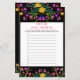 Folha de respostas do jogo de fotos com design do Flor de Fiesta mexicano personalizado para se adequar ao seu evento, como o chá de casamento ou casais. Design floral colorido com flores do estilo arte folk em vermelho roxo e amarelo cor-de-rosa. Projetado para o jogo de fotos de casamento ou chá de panela "onde eles estavam" ou "aonde eles foram" com linhas numeradas para seus convidados somarem até 12 respostas.