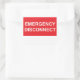Uma folha de etiquetas adesivas de EMERGÊNCIA DESCONECTAR para os eletricistas a utilizar para cumprir os requisitos do artigo 230.85, ponto E, n.os 1 e 2, do Código Elétrico Nacional de 2023.