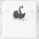 Uma dançarina bonito de flamenco num vestido preto fluindo com fã.