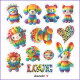 Com seus sorrisos doces e rostos adoráveis, esses coloridos bichos de tricô-arco-íris recheados certamente trarão um sorriso para sua face junto com os corações de impressão leopardo e a palavra "AMOR" que enchem esta folha adesiva. Bask no brilho nostálgico da década de 1980 com estes adesivos, que se você for de certa idade, pode lembrá-lo dos dias passados. Claro que para iluminar seu humor, esses adesivos são giros e divertidos. Comprar-os para uma criança, ou guarde-os para si mesmo! Esta folha adesiva de 8 x 8 polegadas contém 12 adesivos. Para mais adesivos, por favor, verifique a folha adesiva 14x14 na minha loja.