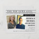 Divertido, salve a data imitando o estilo de uma primeira página de jornal com as fotos da noiva e do noivo e a data e local do casamento. Um fundo de jornal. Tipos de letra negros. Realmente único e criativo.