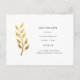 Anuncie seu dia especial com elegância de eterno usando nossa Folha Dourada Elegante Salve o Convite de Data. Este belo convite é uma obra-prima de sofisticação, com um pano de fundo branco intocado, enfeitado com delicados sotaques de folha de ouro. Ele dá o tom de um casamento que não é apenas um evento, mas uma experiência encantadora.