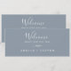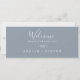 Este mínimo de cabeçalho de assento azul e branco é perfeito para um casamento elegante. A design apresenta uma simples silhueta verde em branco sobre um fundo azul empoeirado com estilo minimalista clássico. A placa impressão na frente e atrás (lado duplo). Verifique a coleção de placas de números de tabela de coordenação.