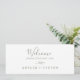 Este cabeçalho mínimo de assento verde-folha é perfeito para um casamento de boho. A design apresenta uma simples silhueta verde-verde-verde em verde-oliva com o estilo minimalista da boêmia montanhosa. A placa impressão na frente e atrás (lado duplo). Verifique a coleção de placas de números de tabela de coordenação.
